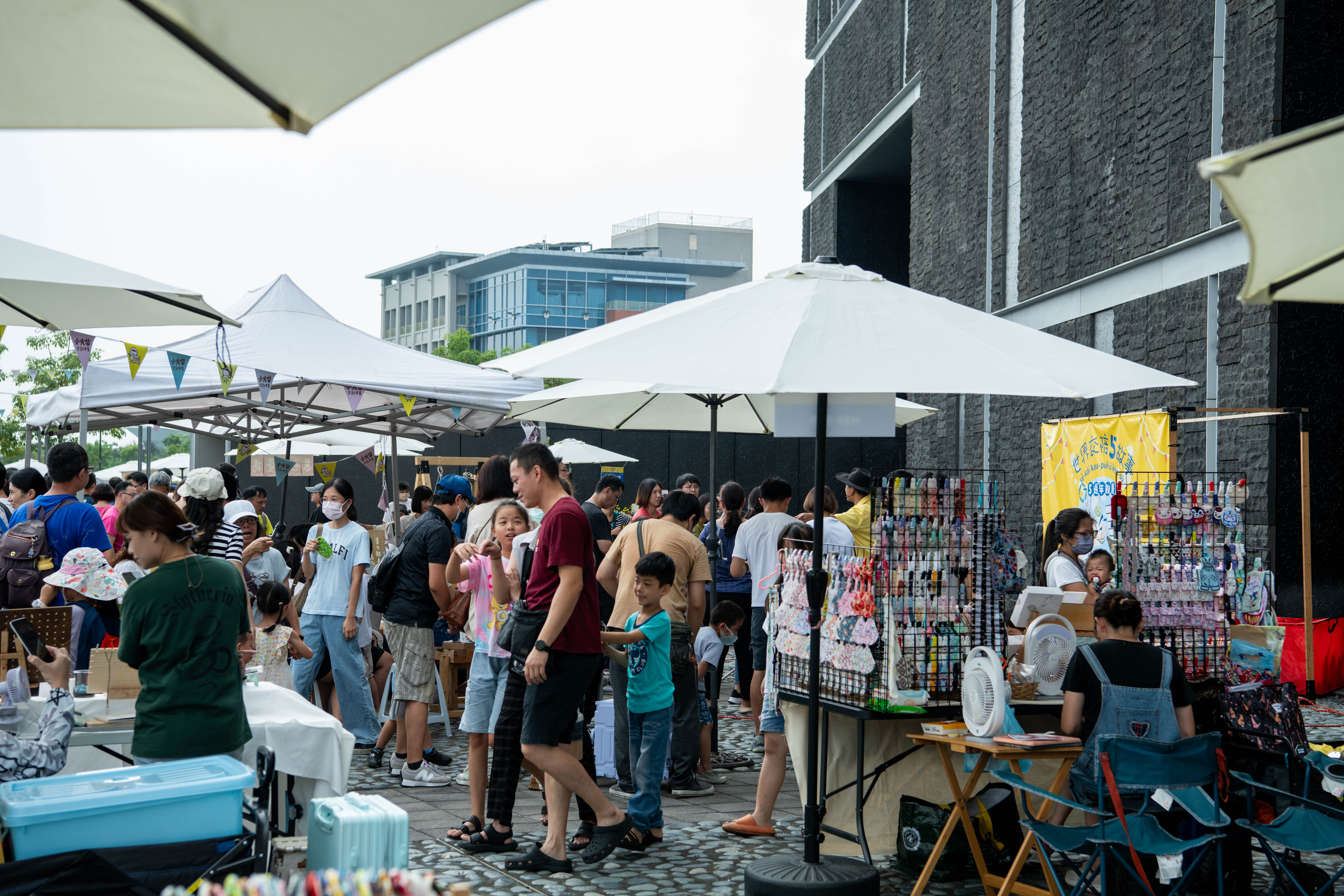 館外「史前食代市集」聚集 40 家小農、手作與文創攤商,凡以臺灣台語點餐並說出活動名稱「史前食代-那食 那掘 較知味」,即可享店家專屬優惠。為響應永續消費與環保理念,現場全面不提供一次性餐具,鼓勵民眾自備或租借現場提供的環保容器。市集並安排多場表演,包括水管阿民、魔術秀、氣球秀與泡泡秀等,讓臺灣台語、音樂與綠色生活交織成熱鬧的假日風景。